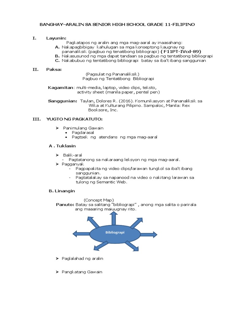 Iwanan din ang mga quote o panahon. Sa bibliograpiya ng libro ano ang dapat mauna sa pangalan ng awtor. Pagkatapos ng araling ito dapat na nagagawa mo ang tamang pagbuo ng tentatibong bibliograpi.