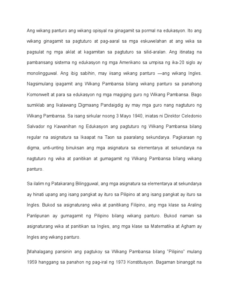 Ang Wikang Panturo Ang Wikang Opisyal Na Ginagamit Sa Pormal Na Edukasyon