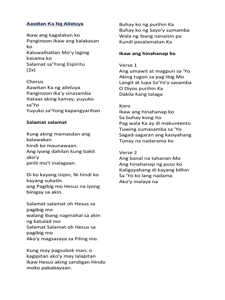 Ang banal na tahanan Mo Ang hinahanap ng puso ko Kaligayahang di kayang bilhin Sa Yo ko lang nadama Ako y malaya na. Ikaw ang laging hanap hanap sa gabit araw Ikaw ang nais kong sa tuwina ay natatanaw Ikaw ang buhay at pag-ibig Wala na ngang iba Sa king pusoy tunay kang nag-iisa Ahh. Deutsch English Español Français Hungarian Italiano Nederlands Polski Português Brasil Română Svenska Türkçe Ελληνικά Български Русский Српски العربية فارسی 日本.