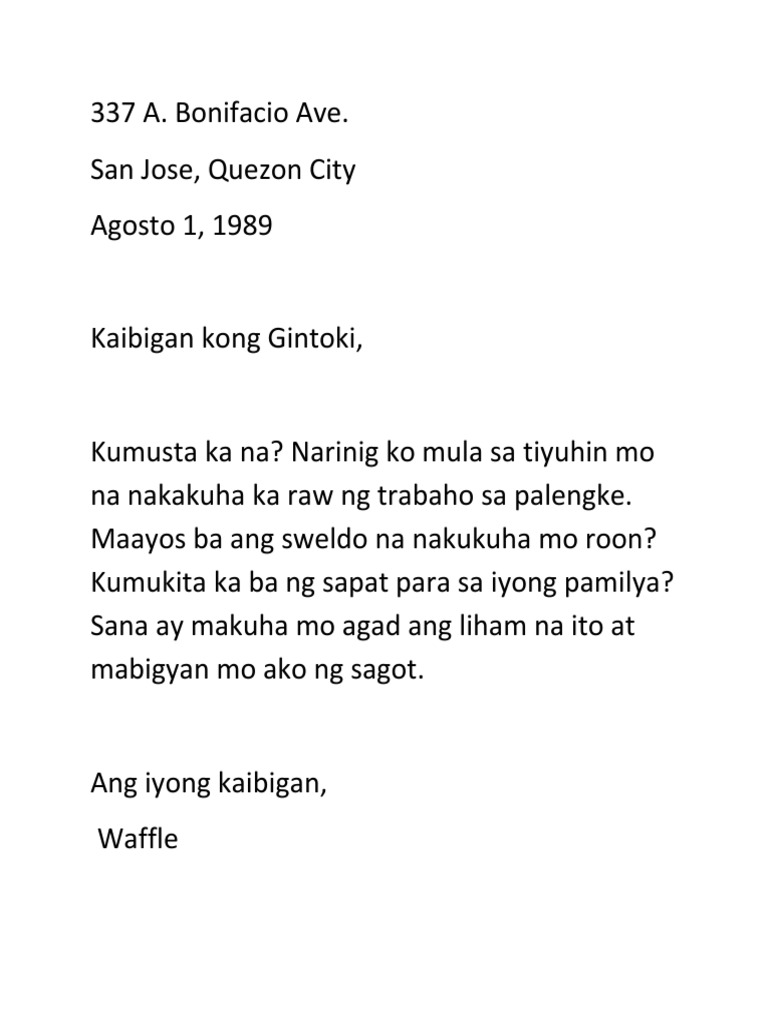 Yung iba siguro masaya dahil yung bestfriend na minahal nila ay mahal din pala sila. Kung hindi ka sanay na makipag-usap sa mga kaibigan na may mga titik ang pagsulat ng isang impormal na sulat ay maaaring patunayan na medyo mahirap para sa iyo. Sulat para sa isang Kaibigan Bersyon ng Teksto Paano Gumamit ng Mga Halimbawa ng Liham ng Sanggunian.